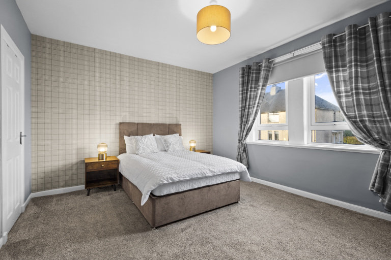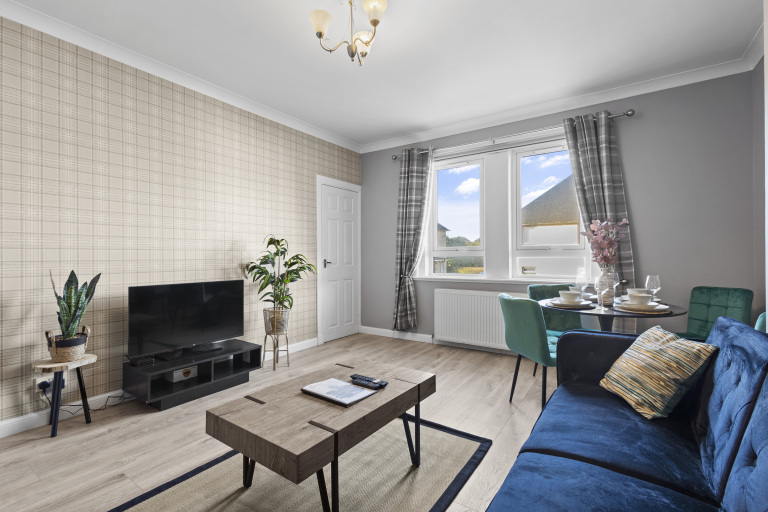 Welcome to your home away from home in Hurlford, East Ayrshire. This freshly refurbished 2-bedroom upper flat offers a warm, comfortable base for contractors, professionals, families, or leisure guests alike. With space for up to 4 guests across one double bedroom and one twin room, this modern accommodation is ideal for short or mid-term stays in a peaceful location.